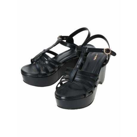 細めのストラップで仕上げた、すっきりとした印象のウエッジサンダル。