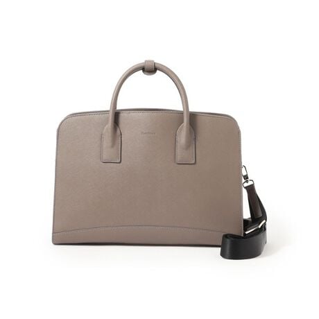 適度に小さなサイズ感とミニマルなデザインが現代のムードにマッチするモダンな佇まいのユニセックスビジネスバッグ。