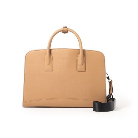 適度に小さなサイズ感とミニマルなデザインが現代のムードにマッチするモダンな佇まいのユニセックスビジネスバッグ。