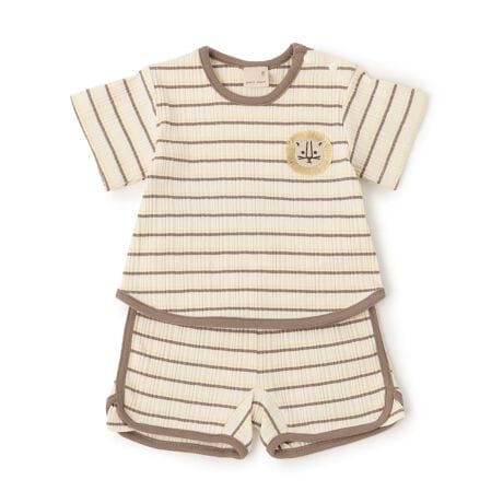 胸元にあしらった動物のワッペンが可愛いボーダー柄のセットアップです。肩開きのスナップボタンつきで、スムーズなお着替えが叶います。それぞれ別のアイテムと組み合わせるスタイリングもおすすめ。リラックスタイムからちょっとしたお出かけまで、幅広いシーンで活躍します。内側にお名前を記入できるタグつき。【おすすめの着用時期は春夏シーズン】