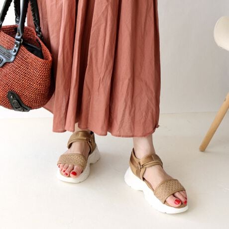 抜け感のあるチュール素材が足元を軽やかに演出するFin(フィン)のチュール厚底ベルクロスポーツサンダルが登場しました。