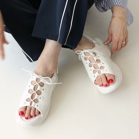 レースアップデザインが新しいFin(フィン)のレースアップ厚底ベルクロ厚底サンダルが登場しました。