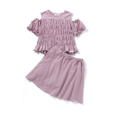 140:身丈39 身幅34 肩幅30 袖丈11.5 袖口幅12.5 ウエスト幅26.5 スカート丈35.5 前股上21 股下4.5 足口幅24.3 腰幅41.5