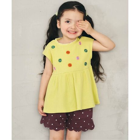 apres les cours(アプレレクール)の半袖Tシャツ「WEB限定 アソート刺繍ペプラムトップス」は、ナチュラルなスタイルにさりげなくデザインをプラスしたおしゃれアイテム*
