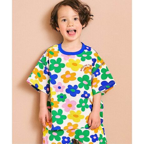 apres les cours(アプレレクール)の半袖Tシャツ「アソート総柄配色ステッチTシャツ」は、ナチュラルなスタイルにさりげなくデザインをプラスしたおしゃれアイテム*