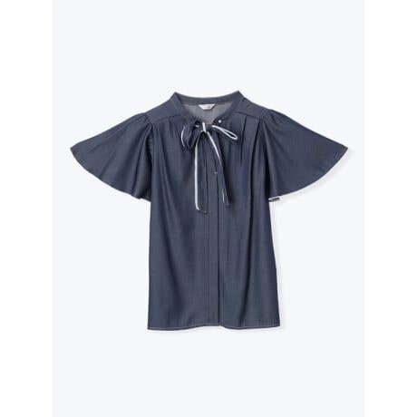 [型番:26580041252]配色のデザインがさりげない表情感をプラスするブラウス。首元はボウタイを施しており、さりげないワンポイントになります。ひらりとしたスリーブのデザインが可愛らしさを演出。ボウタイは取り外しできるので、気分に合わせたコーディネートを楽しめます。
