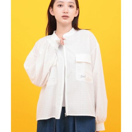 透け感のある素材とチェック柄が今っぽいブルゾン。