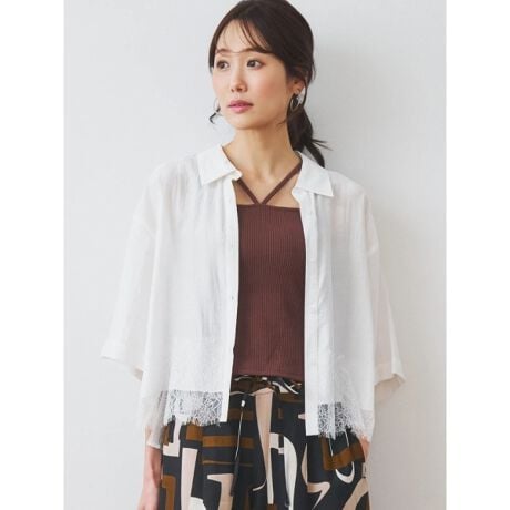 裾のレース切り替えがさりげない透け感を演出するシャツ。