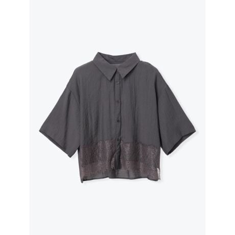 [型番:26550741422]裾のレース切り替えがさりげない透け感を演出するシャツ。レーヨンを含むさらりとした肌触りで、快適な着心地を実現します。ベーシックなレギュラーカラーがきちんと感をプラス。パンツと合わせたきれいめなコーディネートがおすすめです。モデル(白着用)身長:165cmMサイズ着用