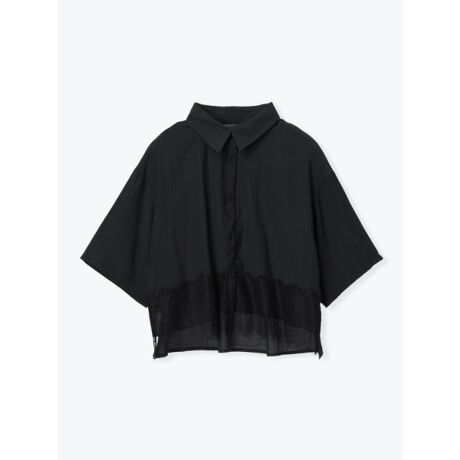 [型番:26550741422]裾のレース切り替えがさりげない透け感を演出するシャツ。レーヨンを含むさらりとした肌触りで、快適な着心地を実現します。ベーシックなレギュラーカラーがきちんと感をプラス。パンツと合わせたきれいめなコーディネートがおすすめです。モデル(白着用)身長:165cmMサイズ着用
