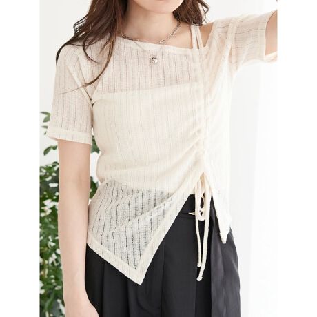 ワンショルダーギャザー半袖トップス