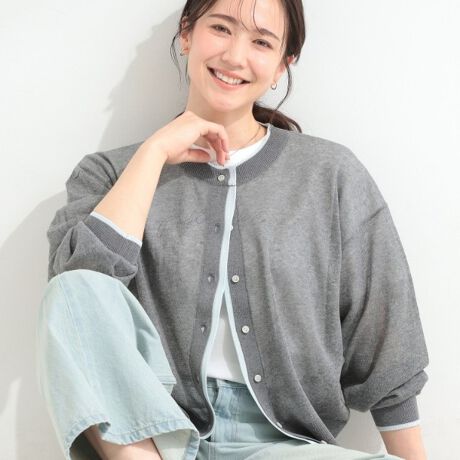 レイヤード風配色が今年らしいカーディガン。
