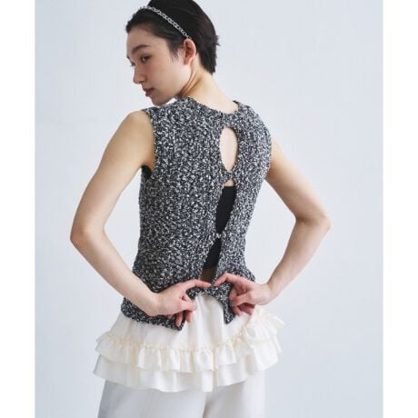 #オープンバック #バックシャン #変形ニット #レイヤードスタイル #夏ニット