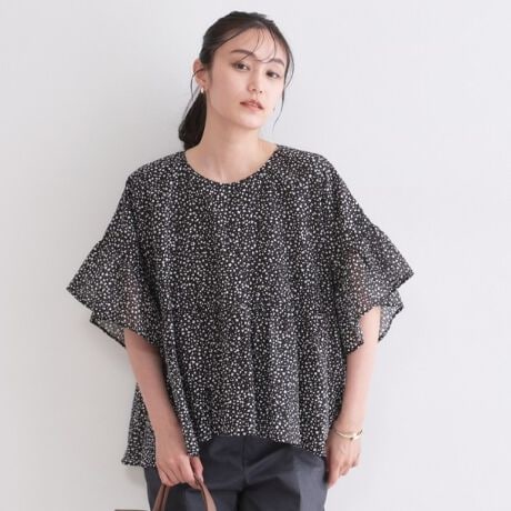 ・ワイドシルエットでリラクシーなフリル袖ブラウスです。