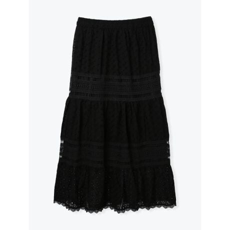 繊細なレースと切り替えデザインで仕上げたロングスカート。