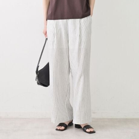 ウエストゴム・ワンタックのリネンブレンドワイドパンツです。