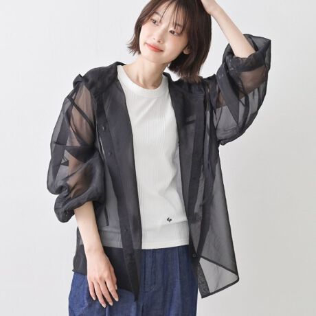 程良い透け感で軽やかな印象に仕上げたフーデッドシャツです。