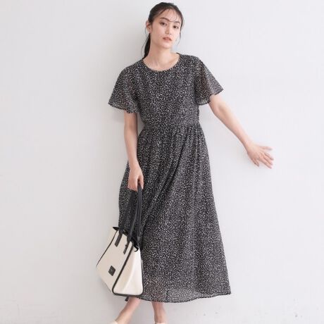 ・一枚で上品に着られるフレアスリーブデザインのフィット&フレアワンピース。