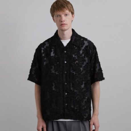 素材の存在感が引き立つ、オープンカラー(開襟)の半袖シャツ。