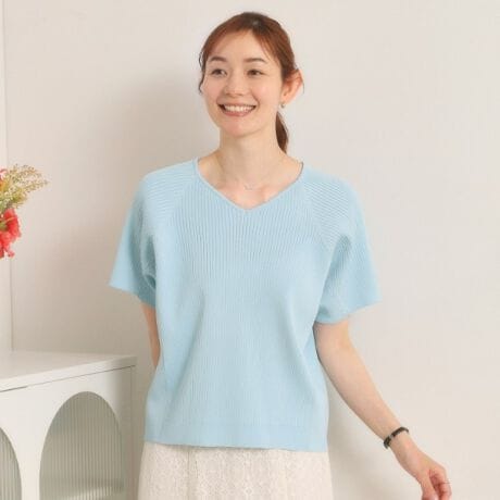 【遮熱/接触冷感/手洗い可】Vネックサマーニット