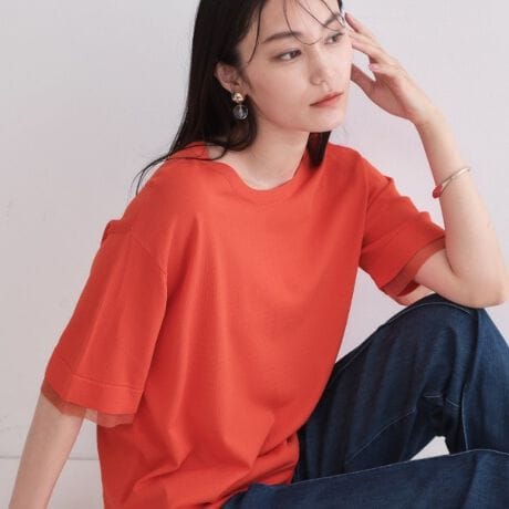 袖口のシアーデザインがポイントのシンプルなサマーニット