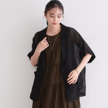 ・夏の時期でも軽やかにまとえる、メッシュ素材のテーラードジャケット。