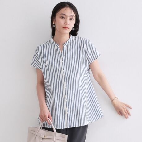 ストライプ フレンチペプラムブラウス【洗濯機OK】