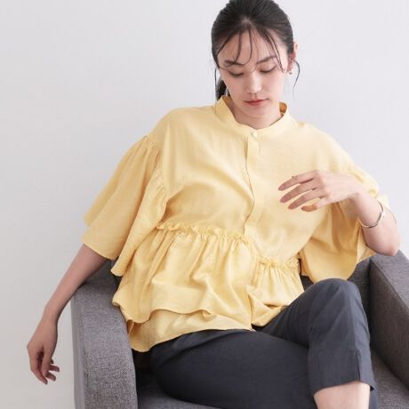 ・アシンメトリーのペプラムデザインが鮮度のあるブラウス。
