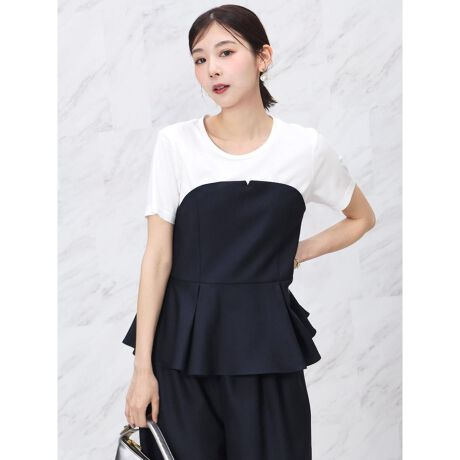 1着でこなれたスタイリングが完成する、ドッキングデザインのカットソー。