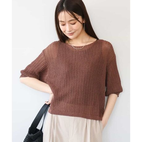 透け感のあるリブ編みニット。一枚でこなれ感の出るクロップド丈で、タンクトップとレイヤードで着こなして、軽く涼しい着心地が特徴です。