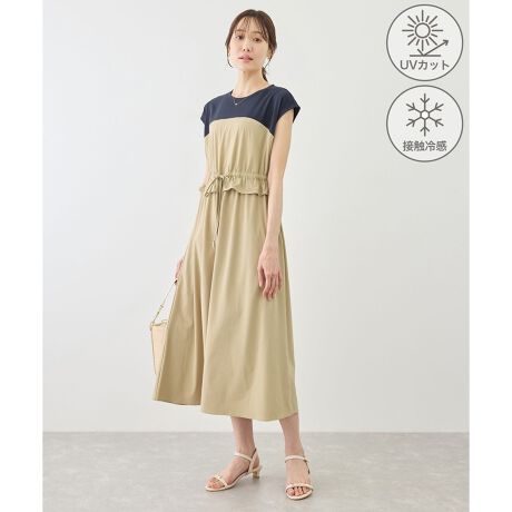 ・ウエストのフリルとリボンが目を惹く、女性らしく上品なデザイン。