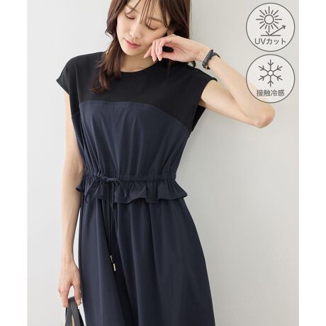 ・ウエストのフリルとリボンが目を惹く、女性らしく上品なデザイン。