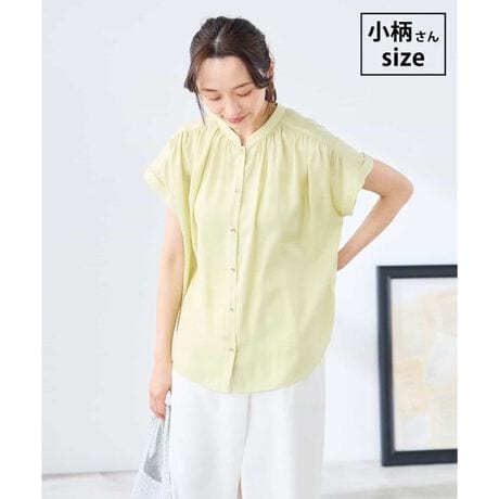 【低身長サイズ】サテンギャザーブラウス【接触冷感/UVカット/吸水速乾/イージーケア】
