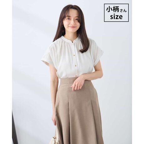 ボトムにインもアウトも決まるシルエットで、幅広いボトムとも相性が良いのでワードローブにあると心強い夏ブラウスです。