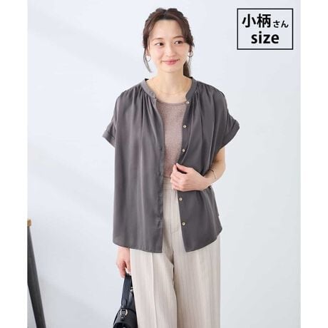 デイリーにも通勤にも使える涼し気な印象のサテンブラウスです。