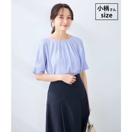 フロントと袖に施されたタックディテールと二の腕が隠れる5分袖がうれしいポイント。