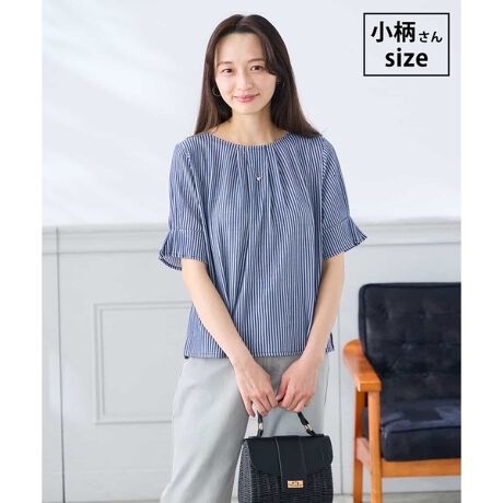 フロントと袖に施されたタックディテールと二の腕が隠れる5分袖がうれしいポイント。