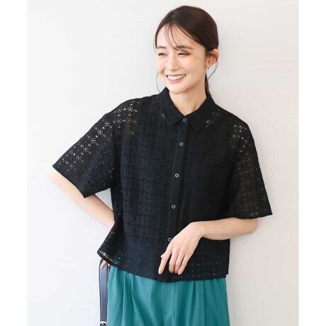 モチーフが重なり合った幾何レースのシャツブラウス。長めの五分袖で気になる二の腕をカバーしながら涼しく着用可能。そのままでバランスの取りやすいクロップド丈も嬉しい。