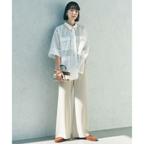 ■デザイン驚くほど軽い着心地が魅力のイージーワイドパンツ。肌離れの良いさらっとした素材で、暑い季節に最適な1枚です。落ち感のある程よいワイドシルエットで、自然と美脚見えが叶います。サイドの縫い目をなくすことで縫い代のあたりもなく、ウエストはゴム仕様で快適な穿き心地です。オンオフで活躍しきれいめなブラウスからカジュアルなTシャツまで、テイストや合わせるトップスを選ばない万能ボトムです。メンズライクなオーバーサイズトップスと合わせたこなれ感のあるスタイリングや、パンプスを合わせたオフィススタイルまで幅広いシーンで活躍します。※アイボリー(002)カラーのみ裏地が付いております。