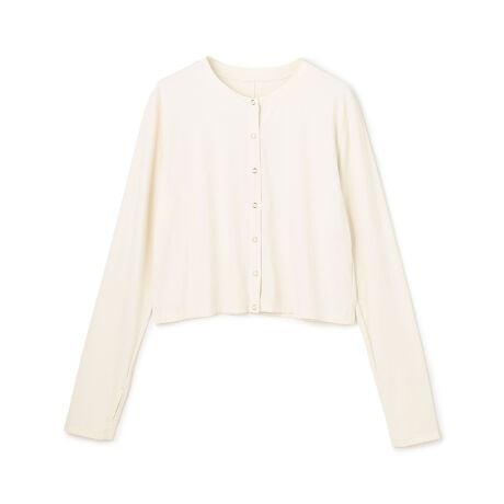 ■デザイン程よくゆとりを持たせた身幅のクロップド丈カーディガン。ストライプ見えの編地と、ドレープ性によりすっきり見えが叶います。長めの袖口にはサムホールがあり、手の甲までしっかり紫外線から守ります。コンパクトにまとまり軽く軽量なので持ち運びにもおすすめ。さっと羽織れて、アームカバー代わりにもご利用いただけます。水際やレジャーだけでなく、日常の紫外線対策として取り入れられるアイテムです。