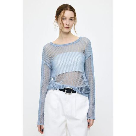 【BOAT NECK MESH KNIT TOP/ボートネック メッシュ ニットトップス】■ポイント透け感のあるメッシュニットトップス。ボートネックとバックスタイルが抜け感を演出し、シンプルながらも印象的な一枚に仕上げています。■ディテール軽やかなメッシュ編みで通気性が良く、ロングシーズン着用可能。バックが空いているデザインで、さりげない肌見せと奥行きのあるシルエットを実現。リラックス感のある着心地も魅力です。ロングスリーブで日除けとしても活躍。■スタイリングキャミソールやチューブトップとのレイヤードがおすすめ。デニムやスラックスと合わせるだけで、抜け感のある大人カジュアルなスタイリングが完成します。■商品のお気に入り登録お気に入りアイテムの再入荷・在庫1点などの通知を受け取ることができます。■ブランドのお気に入り登録新作アイテムの入荷や人気アイテムの再入荷、おすすめトピックスなど、いち早くブランドの情報を受け取ることができます。[注意事項]※画像の商品はサンプルです。実際の商品と仕様、加工が若干異なる場合があります。※画像の商品は光の照射や角度、お使いのモニター環境により、実物と色味が異なる場合がございます。※着用、お取り扱いの際は、アテンションタグをご確認ください。