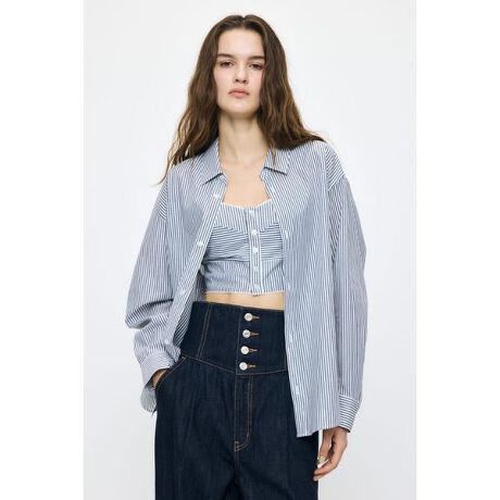 【OVER SHIRT & BUISTIER SET/オーバーシャツアンドビスチェセット】■ポイント&ディテールオーバーサイズのシャツとビスチェをセットにした、レイヤードを楽しめるアイテム。シャツは程よくゆとりのあるシルエットで、1枚でも羽織りとしても使いやすいデザイン。セットのビスチェは、背面はシャーリング仕様で、フィット感がありながらも快適な着心地を叶えます。インナーにビスチェを仕込んだスタイリングが今季のおすすめです。■スタイリングデニムやスラックスと合わせたカジュアルなスタイリングはもちろん、ビスチェを重ねることで一気にトレンド感のある着こなしに。セットでの着用はもちろん、それぞれ単品で着回しができ、シーズンレスに活躍します。