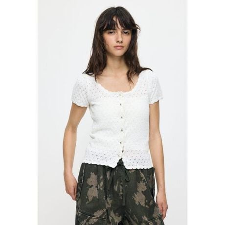 【EYELET BUTTON UP TOP/アイレット ボタンアップトップ】■ポイントアイレットが空いたデザインが可愛いボタントップス。■ディテールコンパクトで肌触りのいい素材でアイレット部分が甘すぎずインナーとして一枚は持っておきたいアイテムです。■スタイリング定番のデニムやレザーのアイテムと合わせたコーディネートがオススメです。■商品のお気に入り登録お気に入りアイテムの再入荷・在庫1点などの通知を受け取ることができます。■ブランドのお気に入り登録新作アイテムの入荷や人気アイテムの再入荷、おすすめトピックスなど、いち早くブランドの情報を受け取ることができます。[注意事項]※画像の商品はサンプルです。実際の商品と仕様、加工が若干異なる場合があります。※画像の商品は光の照射や角度、お使いのモニター環境により、実物と色味が異なる場合がございます。※着用、お取り扱いの際は、アテンションタグをご確認ください。