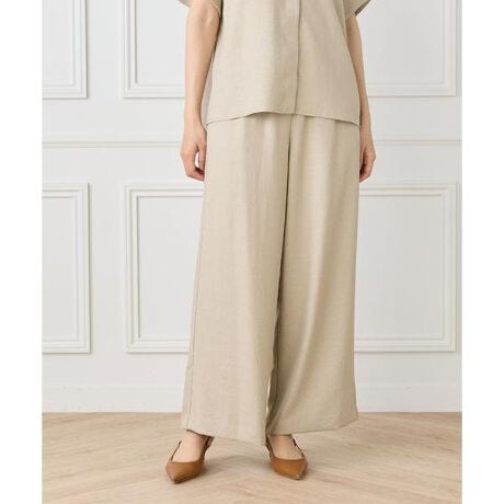 ■デザインリラックス感のあるワイドシルエットが魅力のパンツ。ウエストはゴム仕様に内側ドロスト付きでサイズ調整が可能、着脱もスムーズでストレスフリーな穿き心地です。麻調のさらりとした素材で快適に着用でき、シワになりにくいイージーケア性も兼ね備えています。■素材スラブ混の清涼感ある麻調のツイル素材に、小松マテーレ(株)独自のSY加工を施し、膨らみのある軽やかな風合いとナチュラル感を持たせました。また、光沢加工をする事で高級感のある素材に仕上がっています。麻の様なナチュラルな表面感がありながらも、上品な光沢と滑らかな落ち感を併せ持った素材です。シワになりにくいイージーケア性もポイントです。・水洗い可・ポケットあり・ウエストゴム仕様・ウエスト ドロスト調節可・裏地なし同素材のワンピース品番:7062121830同素材のブラウス品番:7062182828■サンプル撮影商品画像の商品はサンプルです。実際の商品とはサイズや色味、素材、デザイン等の仕様が若干変更になる場合がございます。■カラーについては、可能な限り実際の商品に近いカラーにて撮影をおこなっておりますが、照明の関係により実際の製品とは色味が違って見える場合があります。またパソコン・スマートフォンなどの環境により、若干製品と画像のカラーが異なる場合もございます。現物と画像のカラー差異については返品理由となりませんので、予めご了承ください。■サイズ表記はあくまで目安となります。