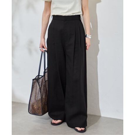 リネンのようなナチュラルな風合いが魅力のロングパンツ。