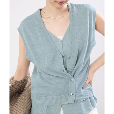 リネン混ならではのナチュラルな風合いが魅力の、レイヤードデザインジレ。