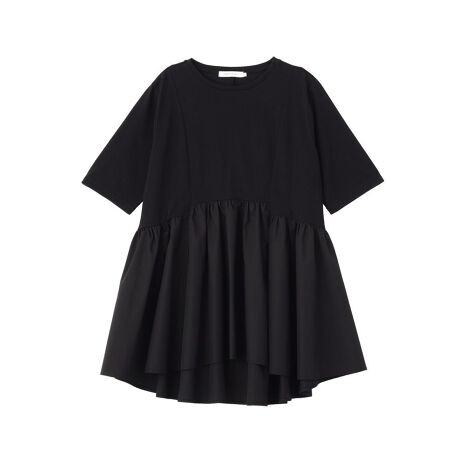 やわらかなカットソー素材と布帛の切替デザインが魅力のトップスです。ウエストから広がるペプラムシルエットが自然に体型をカバーし、気になる腰まわりをさりげなくカバーしてくれます。半袖デザインで季節感を取り入れやすく、カジュアルシーンにぴったりの一枚です。シンプルながらも立体感のあるシルエットが、コーディネートに女性らしい華やかさをプラスしてくれます。パンツと合わせるだけでバランスよくまとまり、日常使いからお出かけまで幅広く活躍します。着るだけでスタイルアップが叶う、頼れるアイテムです。