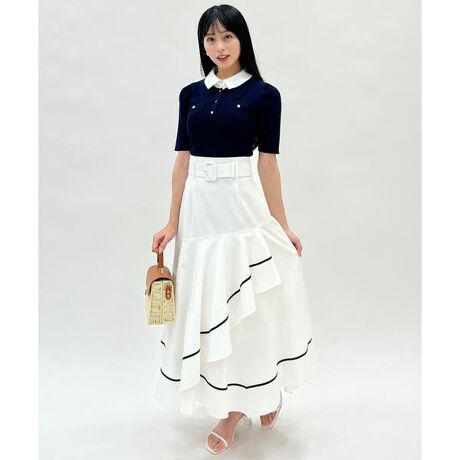 揺れるヘムラインが視線を惹きつけるベルト付きハンカチヘムスカート【Design】・動きのあるハンカチヘムデザインが軽やかで女性らしいシルエットを演出するスカート。・イレギュラーに揺れる裾が、歩くたびに表情を変えコーディネートに華やかさをプラスします♪・ウエストには共布ベルトをあしらい、スタイルアップ効果も期待できるのが嬉しいポイント!・トップスをインした着こなしで、メリハリのある美シルエットが完成◎・シンプルなトップスと合わせるだけで、コーディネートがぐっとこなれる主役級アイテムです!・後ろゴムで程よくフィットしストレスフリーな穿き心地に◎・ベルト取り外し可能【Fabric】・軽やかで落ち感のある素材を使用し、動くたびに美しく揺れるシルエットに。・さらりとした肌触りでロングシーズン快適に着用いただけます。・ホワイト、ホワイトチェック、レッド、ブルーの4色展開となります。【Care】ドライクリーニング