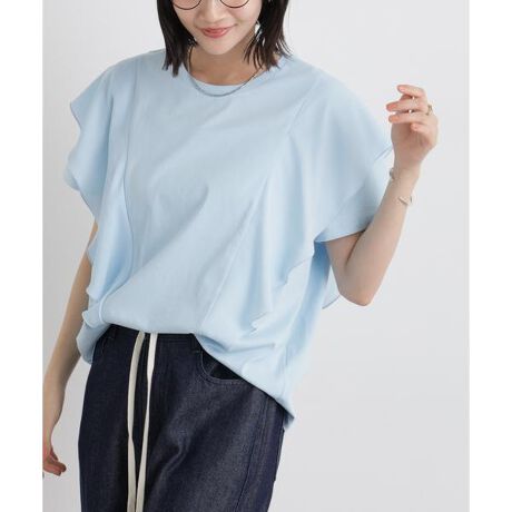 ふんだんにあしらったフレアデザインが華やかに映える、異素材コンビのカットトップス。軽やかなラッフルが立体感を生み、シンプルながらも着映えするアイテムです。