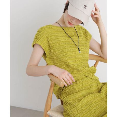 立体感のあるカットジャガード素材が華やかに映えるデザイントップス。Tシャツ感覚のラクな着心地ながらも、表情のある素材がシンプルなスタイリングにニュアンスをプラスしてくれます。